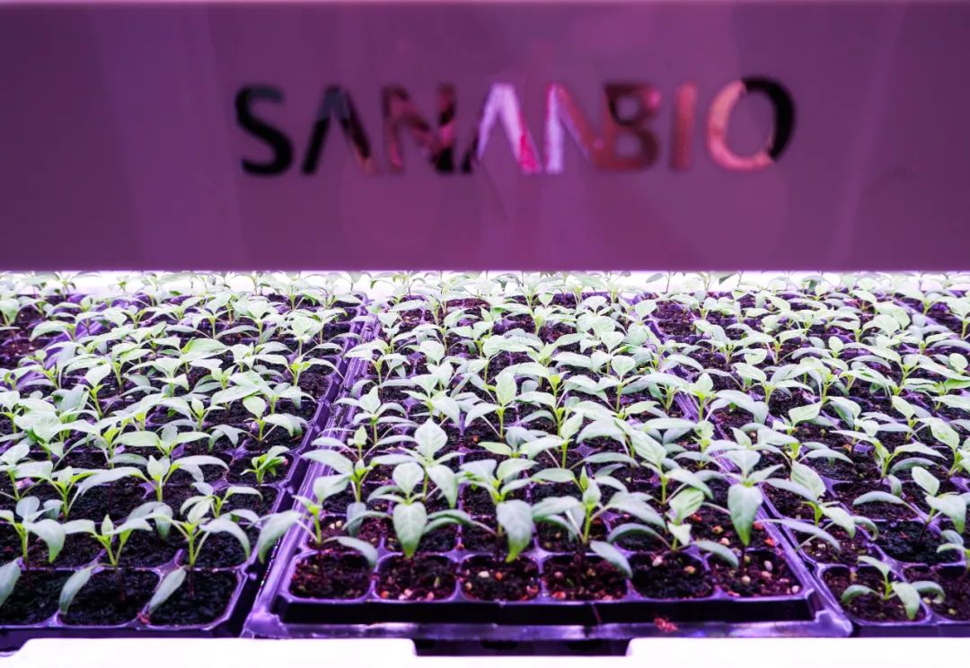 中科三安的展台与众不同,远看仿佛是一个温室花园,近看才知道这叫做化多层育苗生长系统,通过多层育苗技术,提高种植空间,可搭配专业育苗光谱,精准灌溉。
