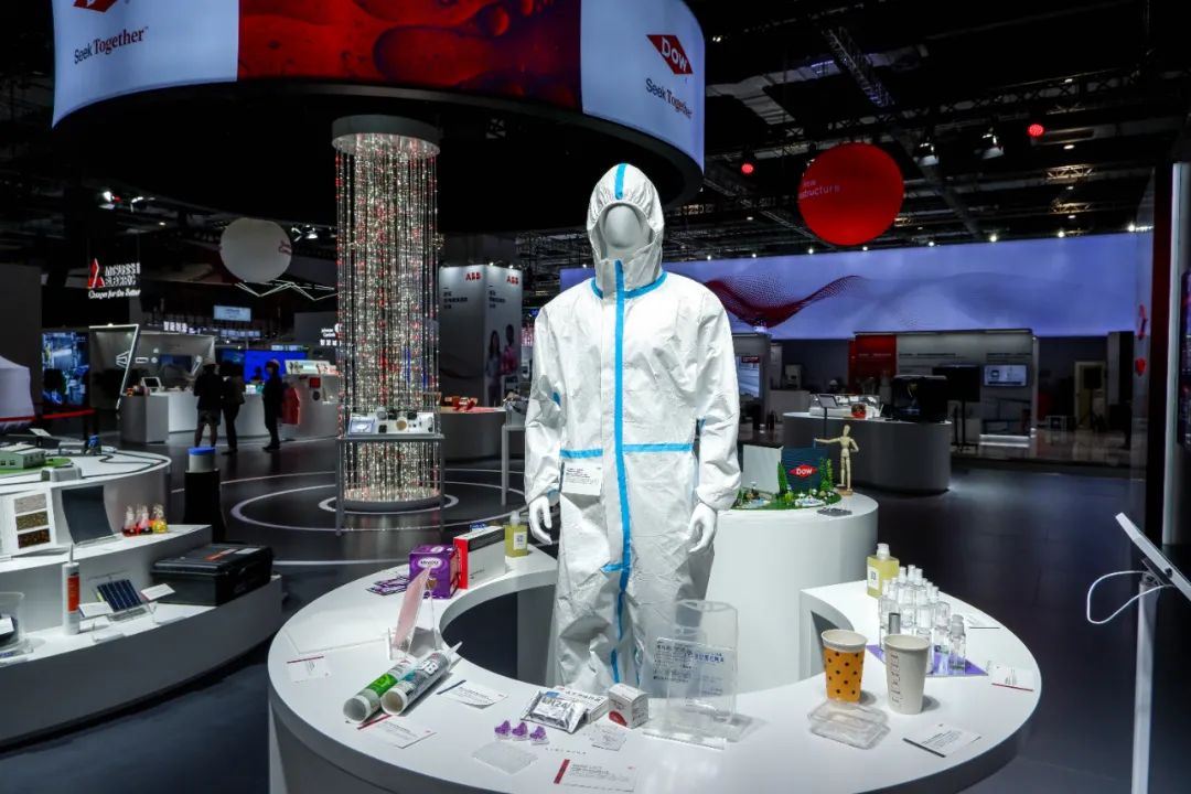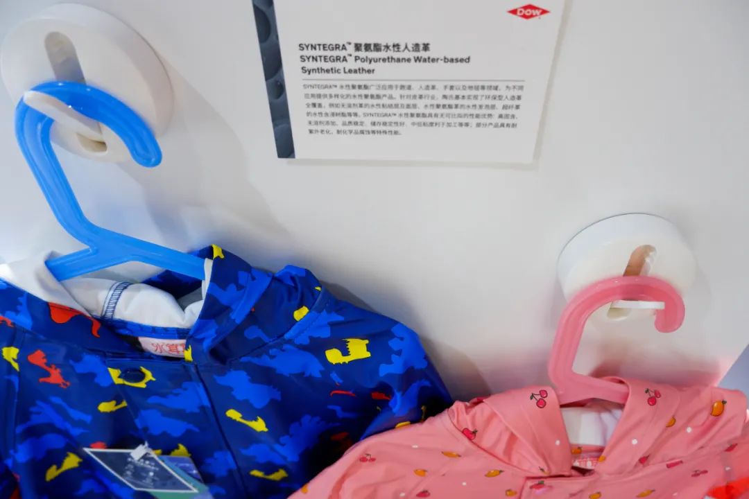 陶氏公司展出的雨衣,该雨衣不仅外观颜色艳丽,最重要的是它使用废旧塑料瓶制作而成,且可再次回收利用。