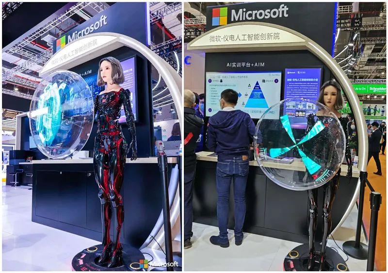 在微软的展台,基金君看到了一款漂亮小姐姐版的EX仿生机器人。现场工作人员告诉基金君,这款机器人是1:1仿制人,能够跟你交流,前段时间蔡徐坤也做了一个同款,大概是这样的。而这位机器人小姐姐前面所持的是一个全息投影。