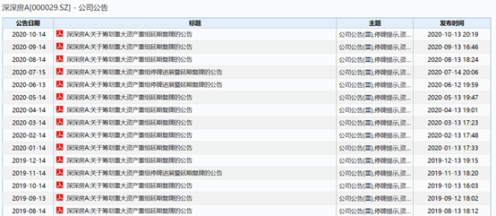 然而,重组事项一再延宕。在这四年中,深深房A每月中旬均会发布一次延期复牌公告,至今已有47份。