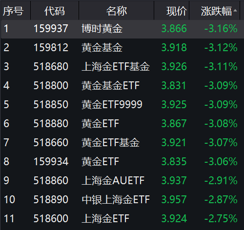 今日黄金股走出跌势,港股山东黄金(01787)跌9.5%,招金矿业(1818)跌8.51%,A股赤峰黄金、银泰黄金跌超5%,紫金矿业、山东黄金等黄金股均不同程度下跌。