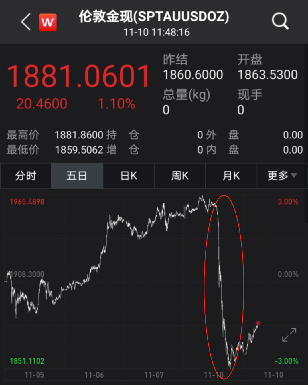 截至午间收盘,港股山东黄金下跌9.5%,报18.96元,招金矿业下跌8.51%,报10.54元;中国黄金国际报11.06元,下跌3.66%;紫金矿业下跌3.62%,报6.65元;灵宝黄金下跌1.74%,报1.13元。