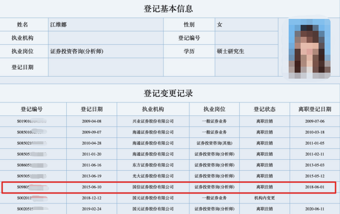 据了解,在加入美年健康之前,江维娜曾为国信证券医药行业首席分析师。证券业协会信息显示,江维娜2015-2018年期间在国信证券就职,2018年底随后跳槽到国元证券,不到两年时间离开券商。