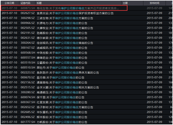 随后,数量众多的A股上市公司发布维护股价稳定的公告,梅花生物也是其中之一。