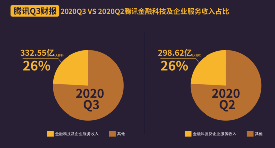 腾讯收入第二大支柱来自金融科技及企业服务收入,第三季度收入达到332.55亿元,同比增长24%。