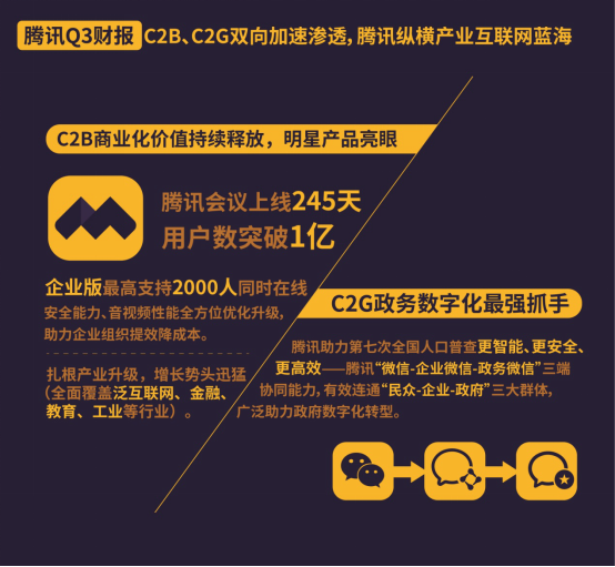 腾讯表示,后疫情时代,线上线下融合加速、云上数字化浪潮汹涌,新兴商业模式层出不穷。腾讯敏锐察觉其中的TO B、TO C双向需求,通过不断完善商业服务能力、科技技术能力、用户连接能力,全面拥抱产业互联网,积极响应国家数字化战略。