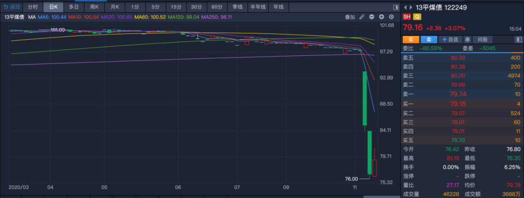 在经历11-12日的大跌后,部分债券在11月13日出现反弹,比如“13平煤债”收涨3.07%;“19云投01”收涨8.93%。有市场人士分析称与央行的逆回购操作有关,当天央行开展了1600亿元7天期逆回购操作。