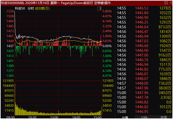 在首批科创板ETF“爆红”的背后,其所追踪的上证科创板50成份指数(000688.SH)今天盘中也大幅上涨, 且出现巨振。今天上午开盘,该指数以全天最高价1520.27点开盘,较上一交易日收盘价暴涨5.80%,如此涨幅为近期少见。不过,该指数其后涨幅也大幅收窄,截至收盘,上涨0.70%。