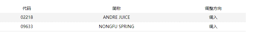 此前10月23日,上交所公告称,将农夫山泉、安德利果汁调入沪港通下港股通股票名单。中国投资信息有限公司下次将于2020年11月16日对港股通标的证券进行定期调整。