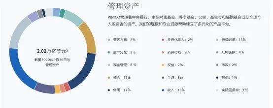 官网资料显示,目前PIMCO管理着中央银行,主权财富基金,养老基金,公司,基金会和捐赠基金以及全球个人投资者的资产。截至9月底,管理资产规模高达2.02万亿美金。