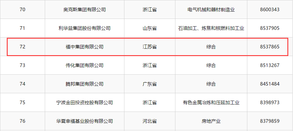 公开资料显示,2019年8月,福中集团被全国工商联评为中国民营企业500强第72位,年销售额超过853亿元;2019年12月,南京市企业100强榜单发布,福中集团位列第5。