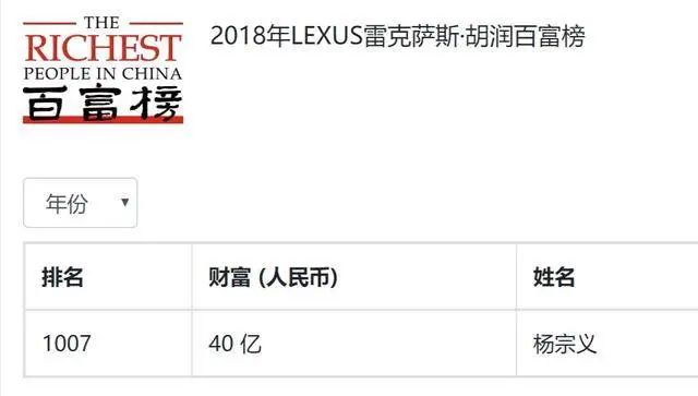 在2015-2018年的胡润百富榜中,杨宗义都以40亿左右的身家上榜,