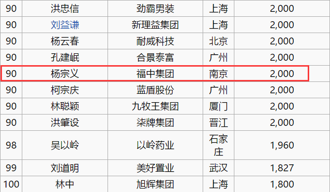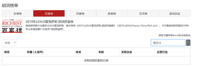 但是到了2019年,杨宗义已经从该富豪榜上消失不见。