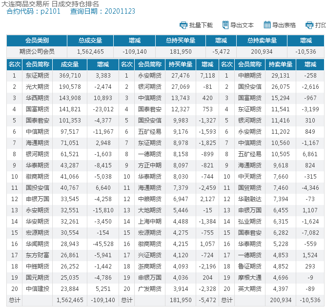 昨日聚乙烯主力2101合约成交排名