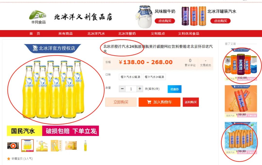 在某电商平台的北冰洋义利食品店,可以看到北冰洋的汽水、北冰洋酸奶、义利的面包、饼干等休闲食品,这些食品都很北京。