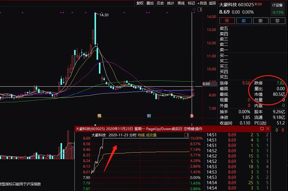 在本次重大资产重组公告之前,11月23日大豪科技股价提前拉升涨停。大豪科技最新收盘价8.69元,总市值80.5亿元。当天成交额1.03亿元,较前一个交易日明显放大。
