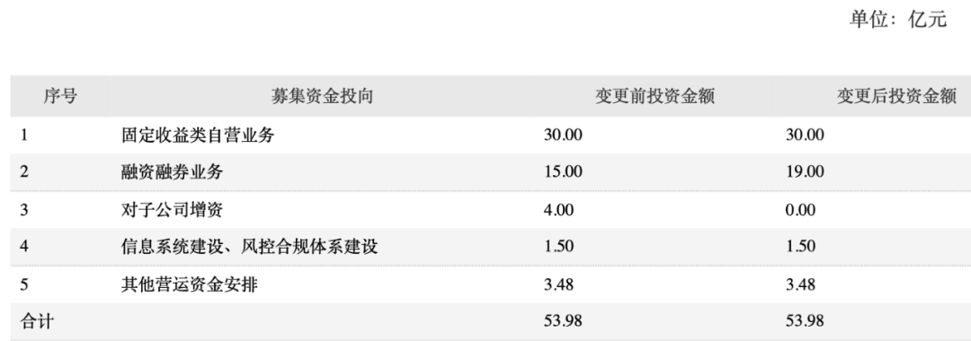 值得一提的是,就在11月17日,国元证券还发布公告称,为提高募集资金的使用效益,公司拟变更部分募集资金用途,将原4亿元(占募集资金净额的比例为7.41%)“对子公司增资”的用途变更为“融资融券业务”。