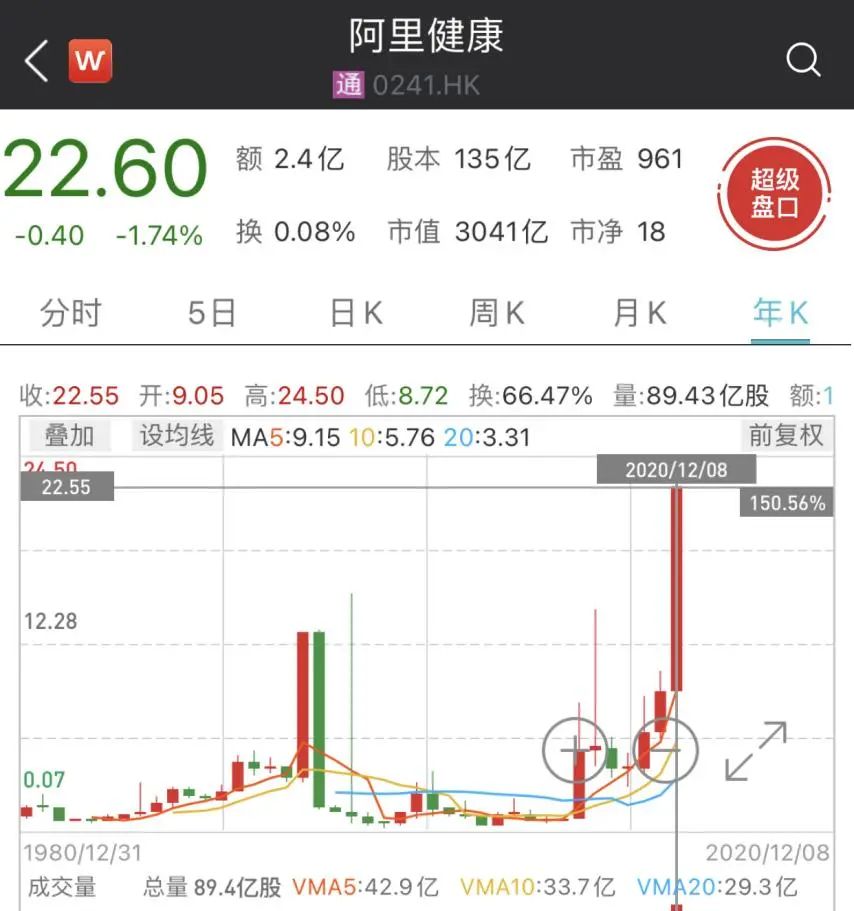阿里健康年涨幅达150%