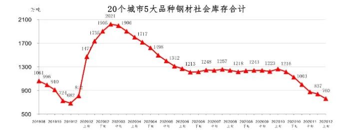 “市场需求太旺盛,钢铁企业都在加大生产力度。”南钢金贸钢宝首席期现分析师蔡拥政认为,现在房地产、家电等终端行业用钢需求旺盛,建材成交活跃,钢材库存持续下降。根据中国钢铁工业协会市场调研部的最新报告显示,12月上旬,20个城市5大品种钢材社会库存仅为760万吨,与今年3月上旬峰值2021万吨相比,下降62.4%!