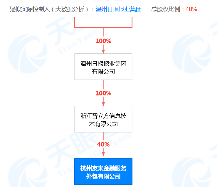 天眼查显示,温报集团间接持有温都金服47%的股权。股权结构显示,温报集团是青蓝金服运营公司实控人。