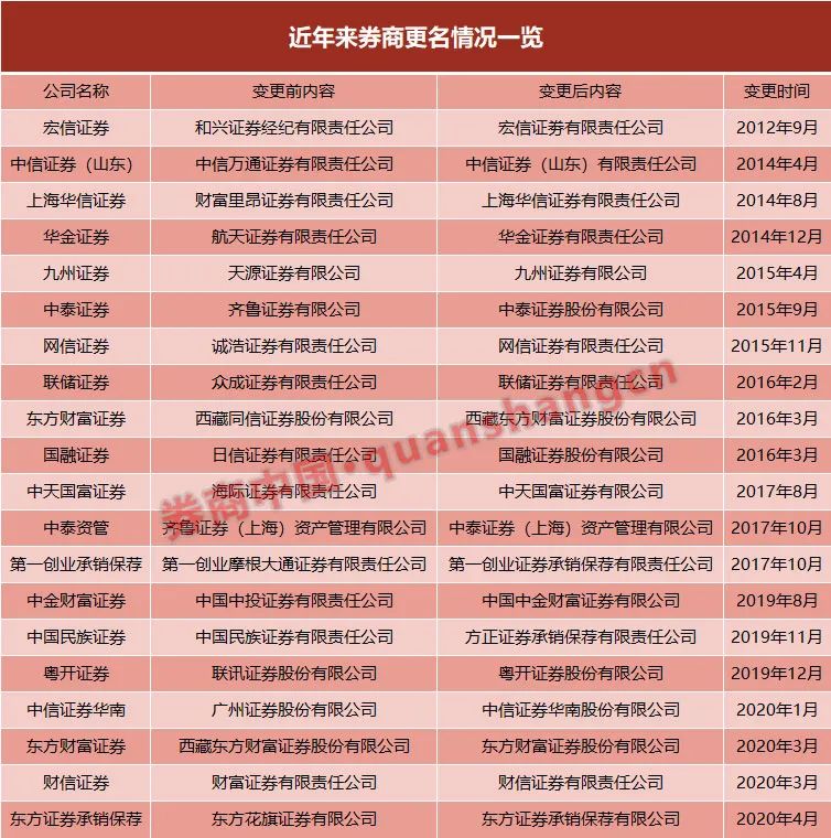 在证券行业的江湖中既有新人报道,也有旧人撤场,更名改姓者也同样有之。