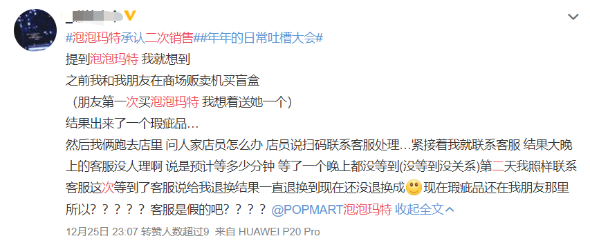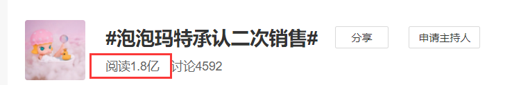 泡泡玛特二次销售的事情,在圣诞节晚上迅速冲上微博热搜。截至目前,已经有近2亿人次阅读了该话题。