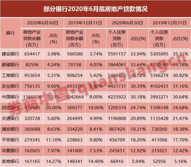 券商中国记者统计上市银行2020年半年报数据发现,如果按照去年上半年末的水平,大部分银行的房地产贷款业务都在限额范围内。不过,也有部分银行偏高,比如,建设银行、邮储银行的个人住房贷款超过32.5%;招商银行超过20%,略高于现行标准中对应的限额比例。