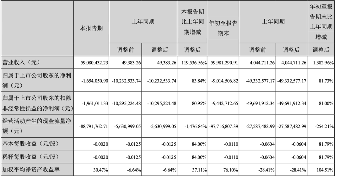 此前,*ST盈方公布公司前三季度经营业绩,期间实现营业收入5998.13万元,同比增长1382.96%;归属于上市公司股东的净亏损901.45万元,上年同期亏损4933.26万元(调整后);归属于上市公司股东的扣除非经常性损益的净亏损944.27万元,上年同期亏损4969.19万元(调整后);基本每股亏损0.0110元。
