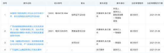 天眼查数据显示,1月8日,中国银行汕头分行与林少军,陈乐伍等相关信用证开证纠纷,陈乐伍与林少军被限制消费,广东猛狮新能源科技股份有限公司因违反财产报告制度被列为失信被执行人。
