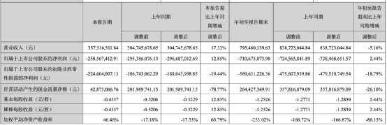 *ST猛狮公布,公司前三季度实现营业收入7.95亿元,同比下降5.16%;归属于上市公司股东的净亏损7.11亿元,同比增加2.44%。值得注意的是,前三季度经营活动产生的现金流量净额为2.64亿元,同比减少26.1%。