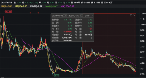 由于业绩承压,*ST猛狮近来的股价表现也不太好看,2020年以来一路下跌,至今已经跌超52%。