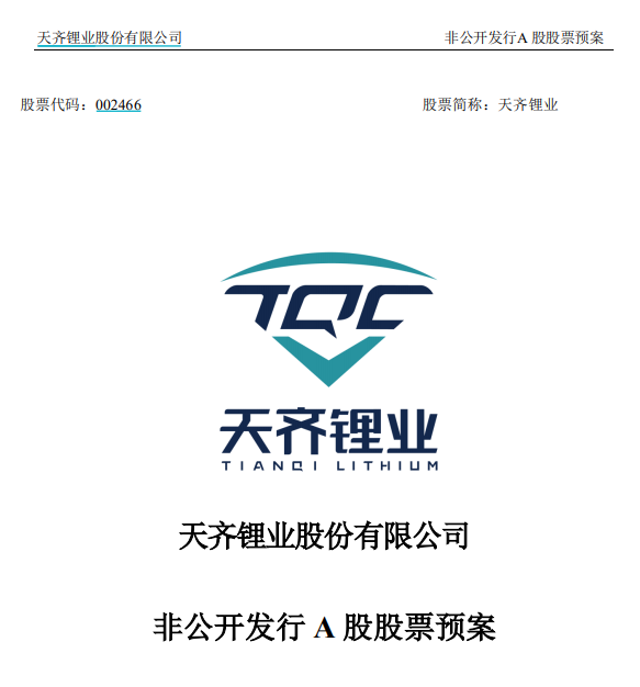 天齐锂业拟定增募资不超159亿元 发行价为35.94元