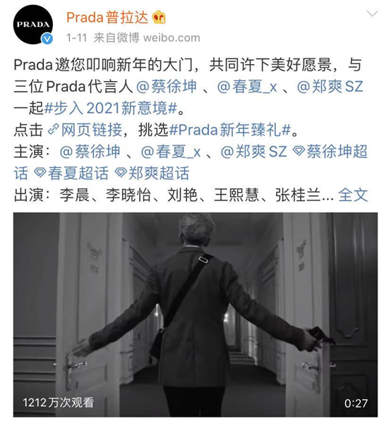 郑爽近期的微博也有不少内容是为Prada做的宣传和推广。