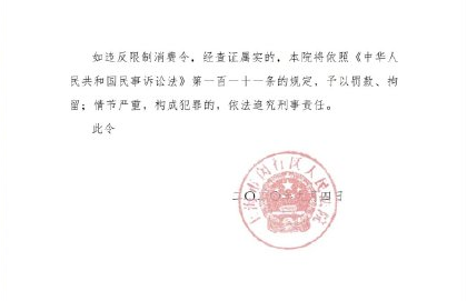 该限制消费令称,本院于2020年8月25日立案执行申请人王一婧申请执行你单位仲裁一案,因你单位未按执行通知书指定的期间履行生效法律文书确定的给付义务,对你单位采取限制消费措施,限制你单位及你单位法定代表人张恒不得实施高消费及非生活和工作必需的消费行为。