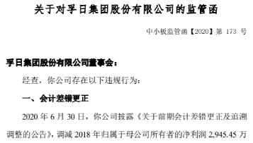 去年8月,因孚日股份多次延期披露2019年经审计的年报,被深交所下发监管函。
