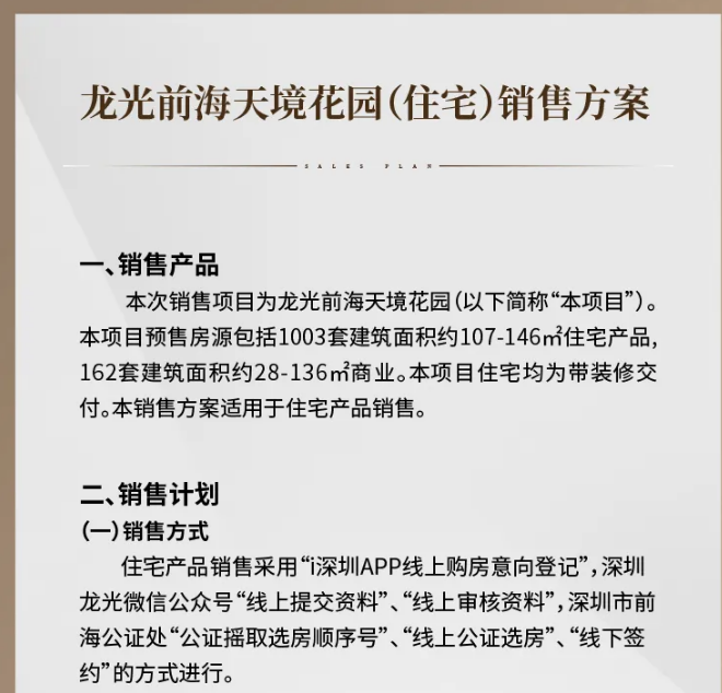 龙光前海天境和天健悦桂府都要先在i深圳APP上进行购房意向登记,才能在相应公众号线上提交资料。目前,i深圳APP上“购房诚意登记“已经上线。