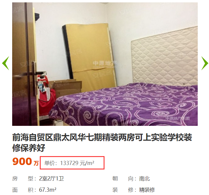 位于前海一侧的鼎太风华小区二手房挂牌价也高达每平方米11-14万元左右。该小区的120平米以上的大户型一般都在11.3万元左右的均价。