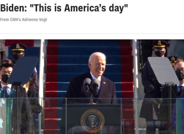 “这是民主之日,是充满历史和希望、复兴和决心之日。” 拜登说,“美国经受了新的考验,美国已奋起迎接挑战。”
