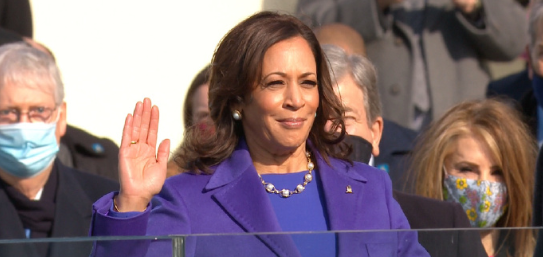 随后,美国当选副总统、民主党人卡玛拉·哈里斯正式宣誓就职美国副总统。