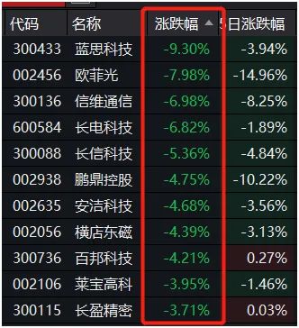 其他个股方面,信维通信跌6. 98%,长电科技跌6.82%,长信科技、鹏鼎控股、安洁科技、长盈精密、歌尔股份、工业富联等跌幅也比较明显。