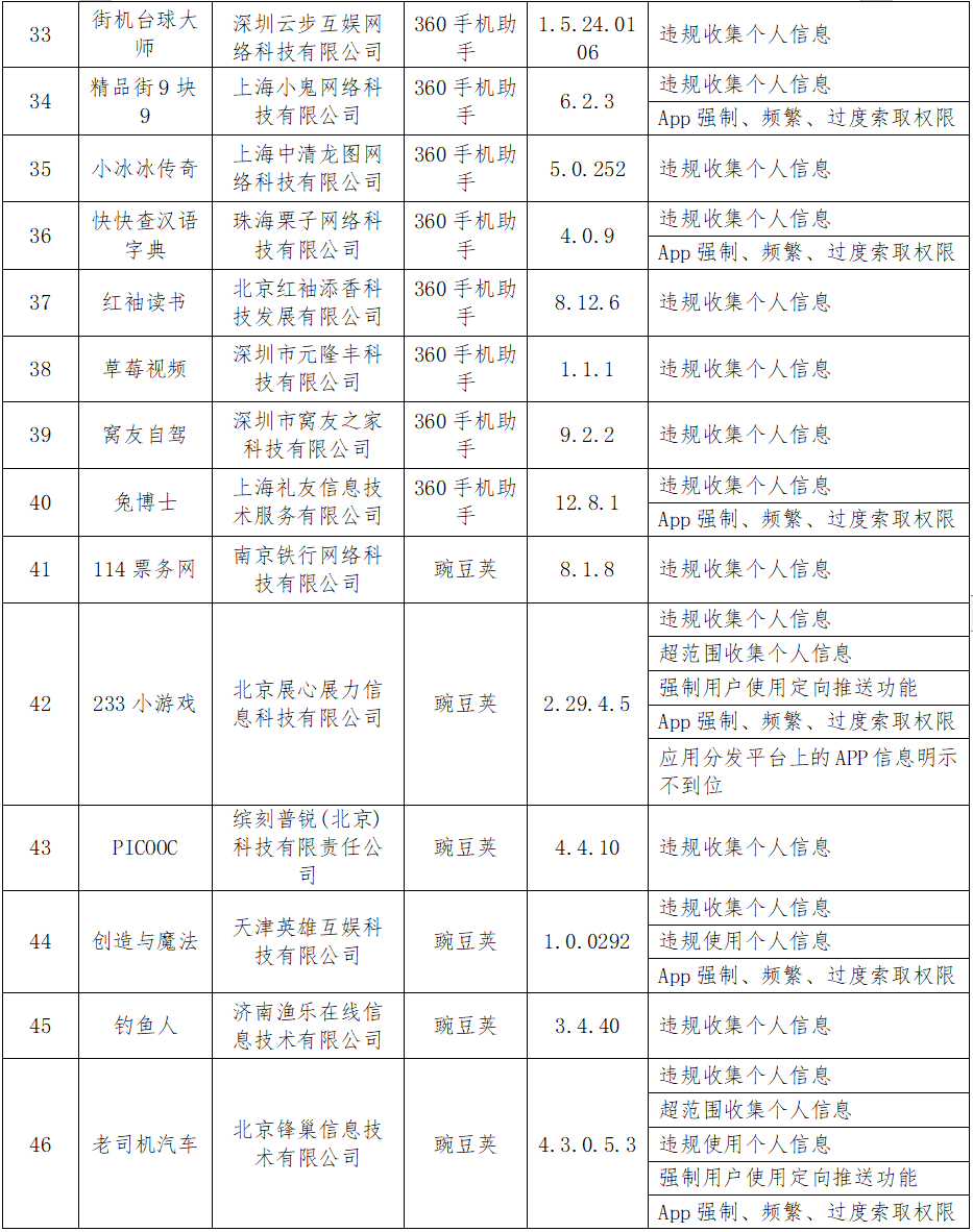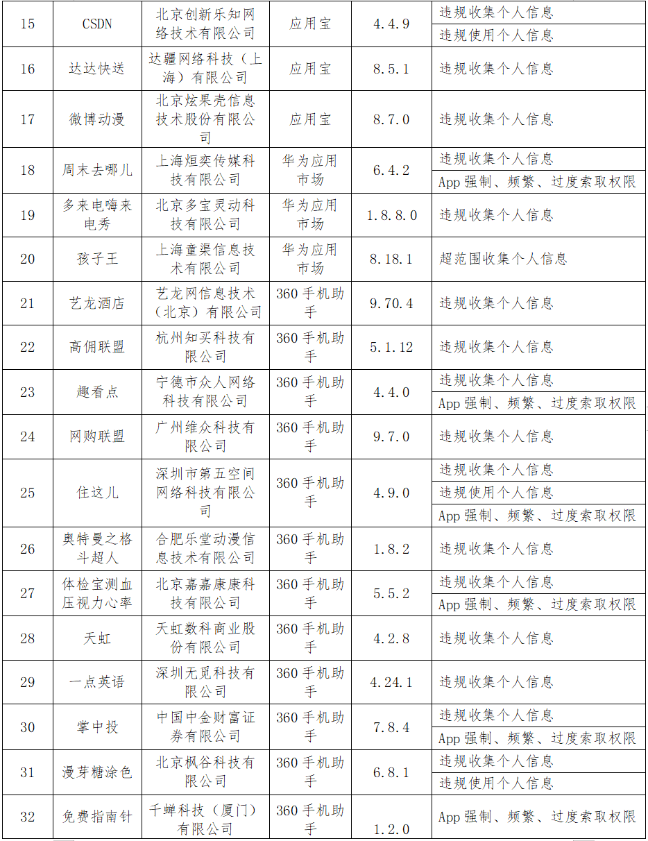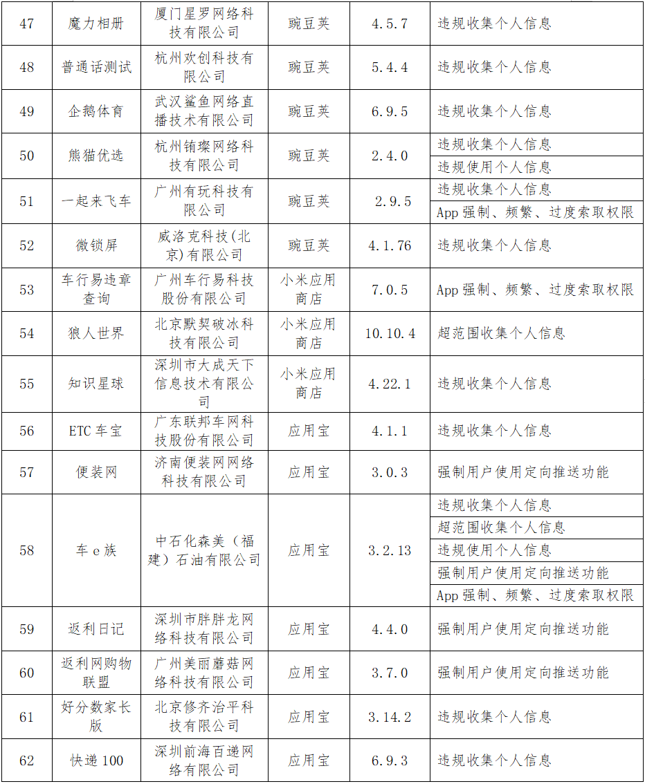 记者注意到,此次被通报的上述157款未完成整改的APP涉及的问题,主要包括违规收集个人信息,违规使用个人信息,欺骗误导用户下载APP,APP强制、频繁、过度索取权限,超范围收集个人信息,应用分发平台上的APP信息明示不到位等。