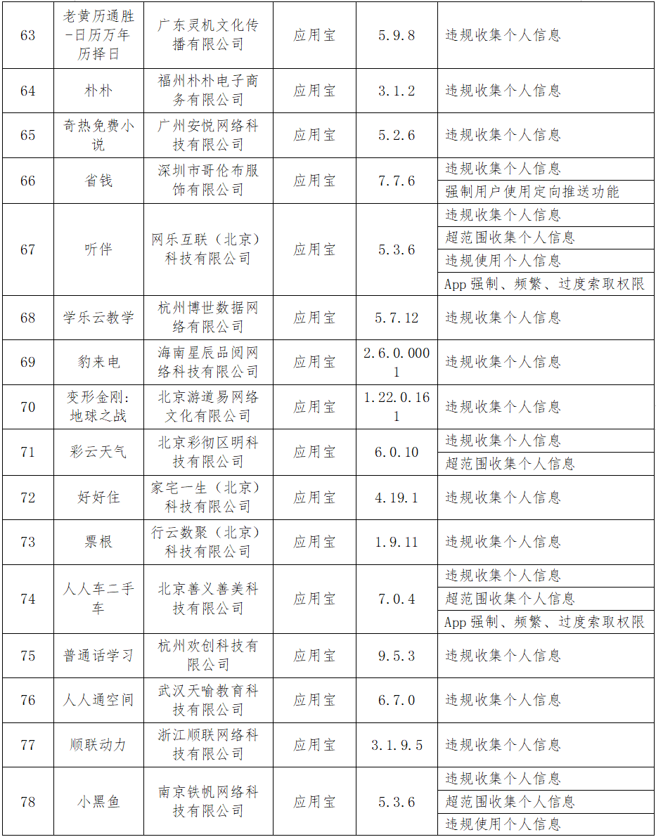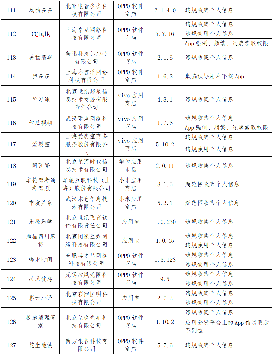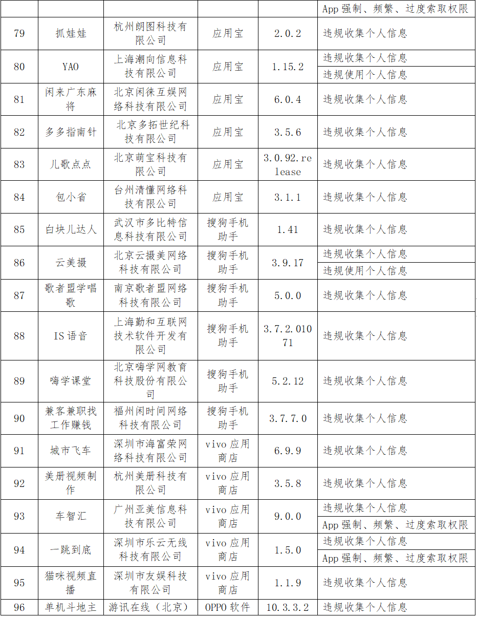 记者注意到,此次被通报的上述157款未完成整改的APP涉及的问题,主要包括违规收集个人信息,违规使用个人信息,欺骗误导用户下载APP,APP强制、频繁、过度索取权限,超范围收集个人信息,应用分发平台上的APP信息明示不到位等。