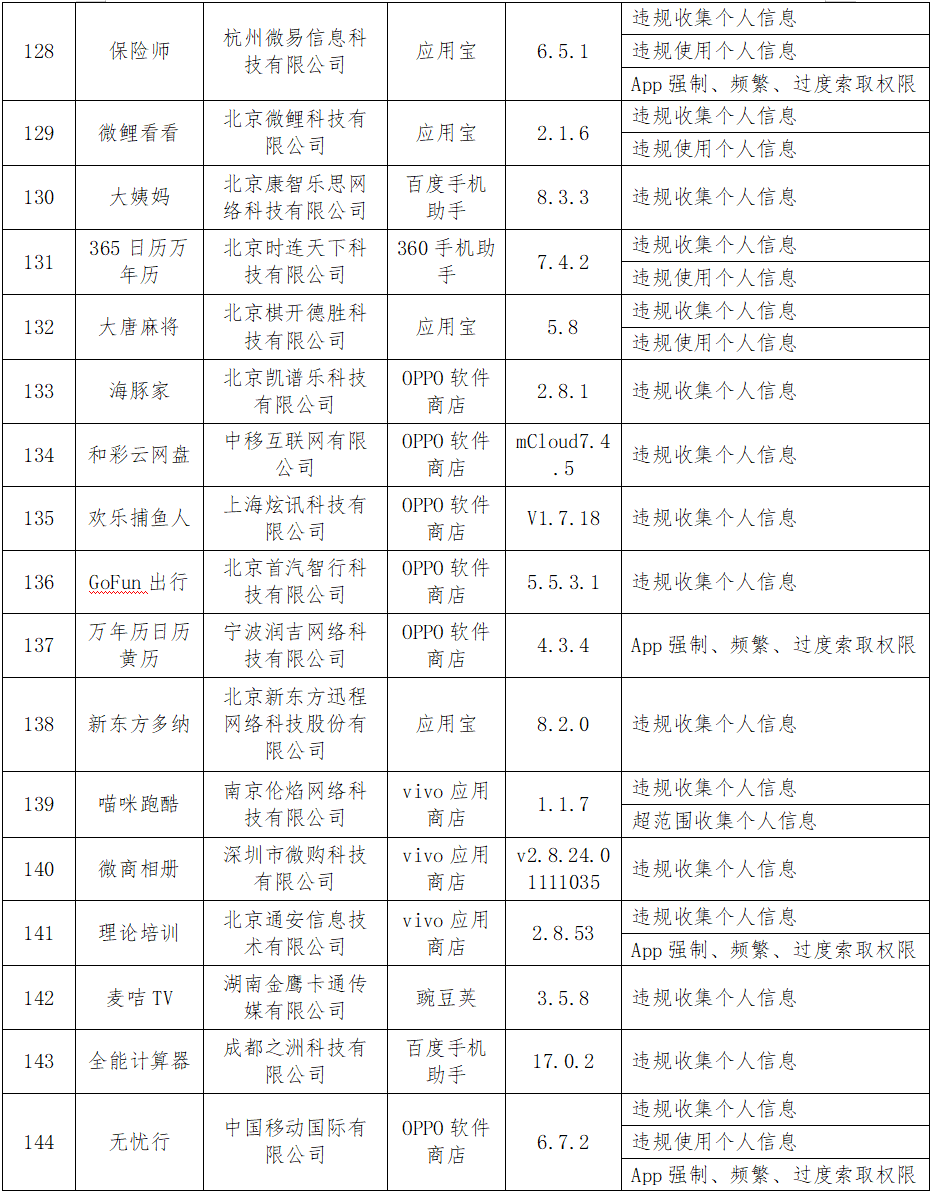 其中,有134款APP涉及违规收集个人信息,有40款APP涉及APP强制、频繁、过度索取权限,有26款APP涉及违规使用个人信息等。