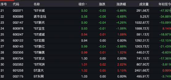 目前来看,A股中仍有多只股票命悬一线,股价在1元左右徘徊。例如*ST长城、*ST新光、*ST宜生、*ST成城、*ST宏图、*ST赫美等股价均不足1元。对于这类股票,投资者应时刻警惕风险。