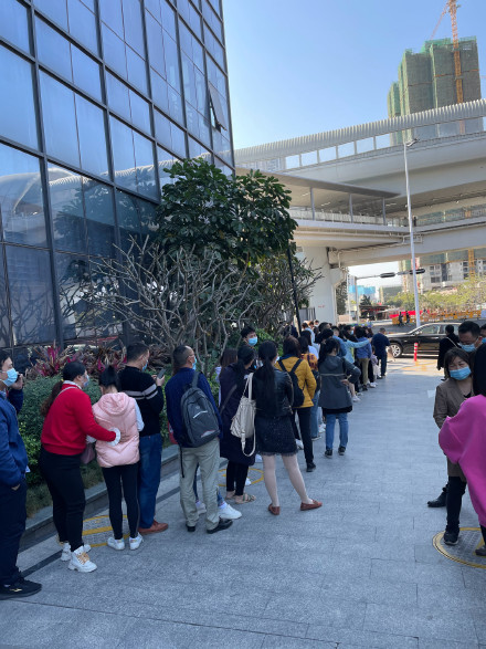 “深圳6楼盘齐开,(很多人)都在打印征信,这个是光明打印处,排到银行外面,排队人群拐了好几个弯。”29日下午,“深圳房产CY”在新浪微博上表示。