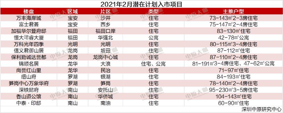 除了六大新盘外,据深圳中原研究中心统计,2021年2月计划入市的还有一批在福田、龙华、罗湖的楼盘。可以预期,这些楼盘的打新行为将都被更严格地监控。