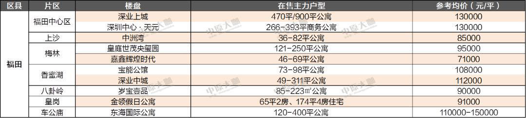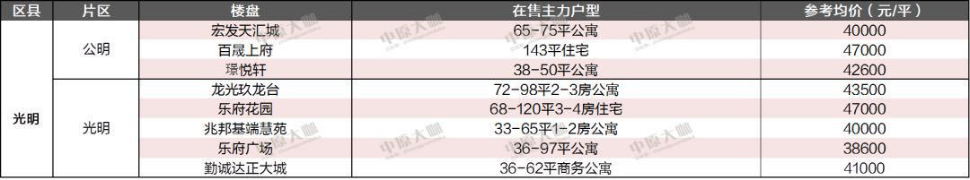 最便宜的是光明区的万科光年四季花园,均价5.14万/平,最贵的是南山沙河新岗街的香山道公馆,均价超过11万/平。