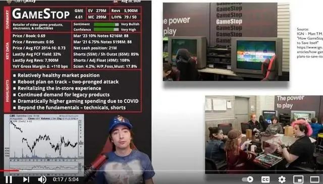 2020年7月,他开始在YouTube上发布视频,坚信游戏驿站被重度做空,是被市场低估的投资机会。