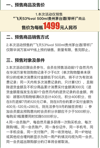 (以上为华润万家茅台抢购规则,来自于华润万家APP)