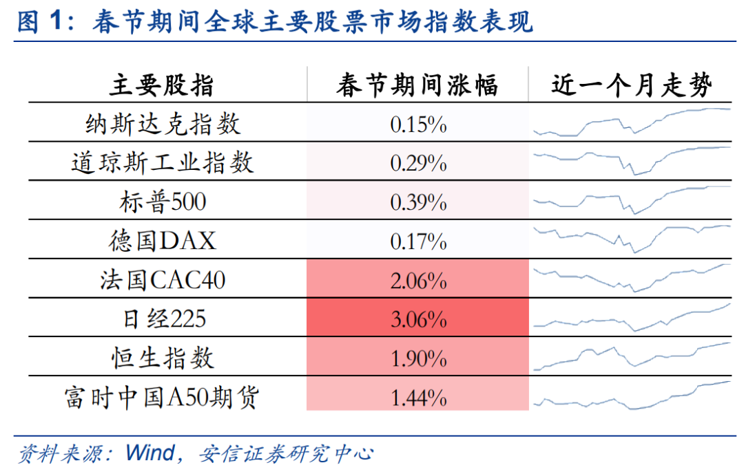 3)春节期间全球普涨,市场风险偏好持续提升。